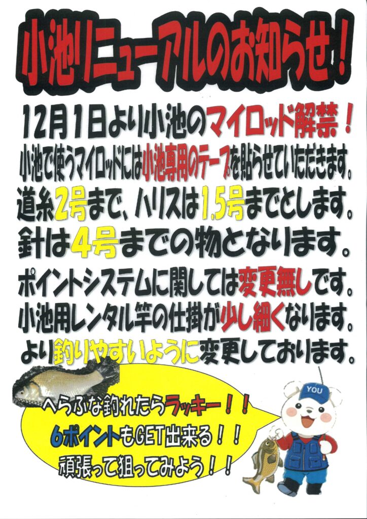 なんと!!なんと!!!本日12/1より小池がリニューアルいたしました!!