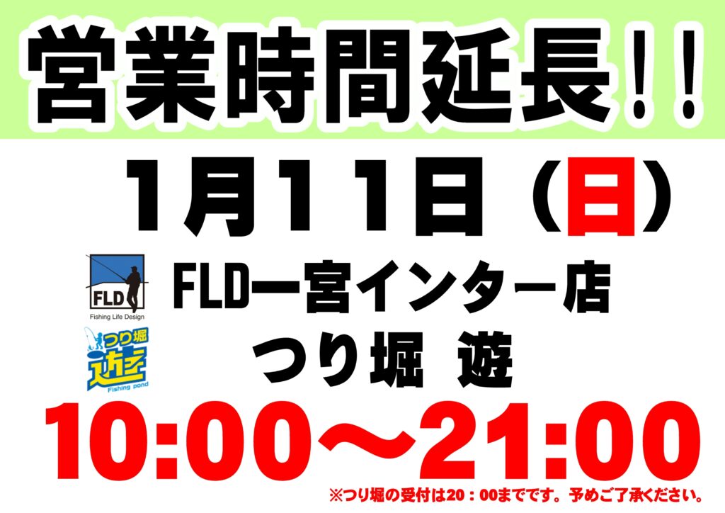 明日、1月10日(日)は祝前日の為営業時間が1時間長くなります!